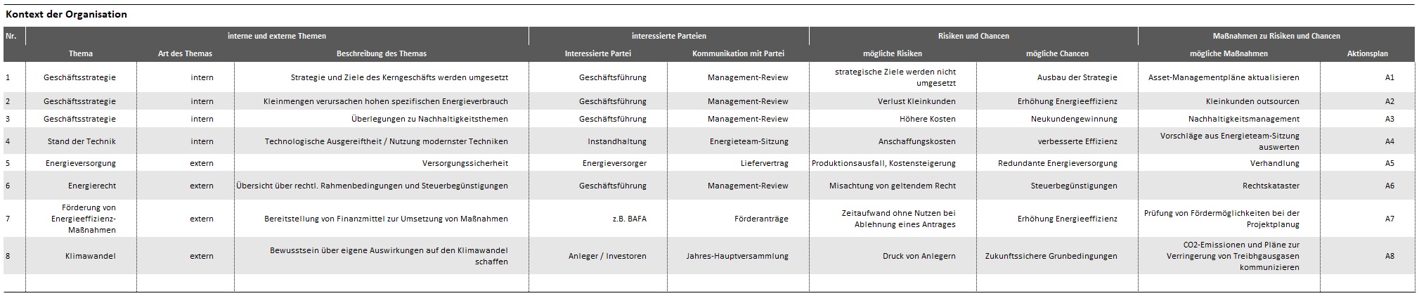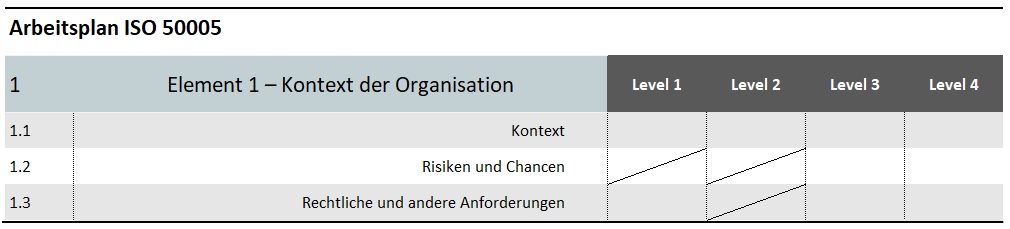 Grafik Arbeitsplan DIN ISO 50005 Element 1: Kontext der Organisation