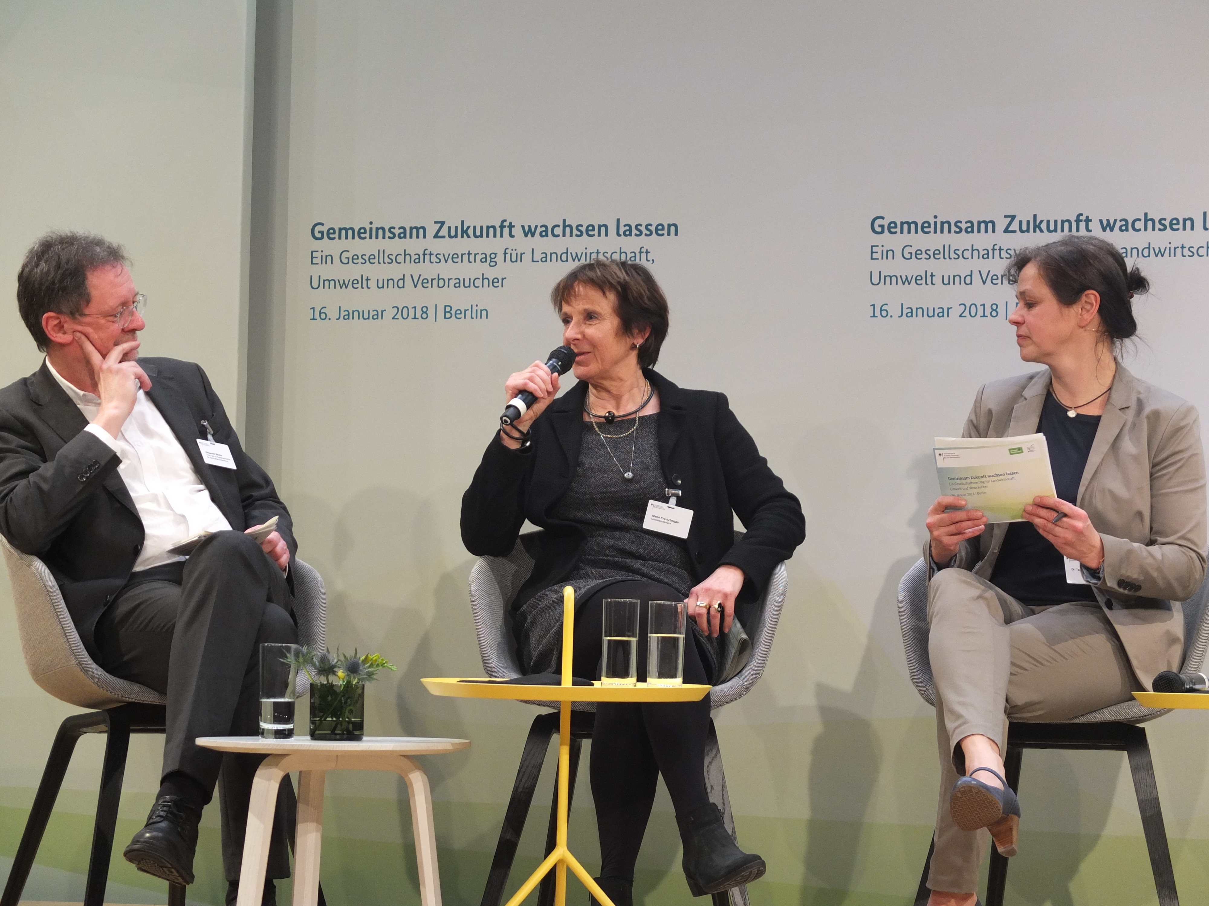 Unter dem Titel „Gemeinsam Zukunft wachsen lassen – Ein Gesellschaftsvertrag für Landwirtschaft, Umwelt und Verbraucher“ diskutierten am 16. Januar 2018 Vetreterinnen und Vertreter aus Politik, Landwirtschaft, Umwelt, Wissenschaft, Verbraucherinteressen, Gesundheit und die interessierte Öffentlichkeit. Gekommen waren unter anderem Umweltministerin Barbara Hendricks, Landwirtschaftsminister Christian Schmidt, Klaus Töpfer (ehemaliger Bundesumweltminister und Exekutivdirektor des Umweltprogrammes der Vereinten Nationen) und UBA-Präsidentin Maria Krautzberger. Thema war die Notwendigkeit, sowie Möglichkeiten einer Neugestaltung der Landwirtschaft, die auf einem Konsens zwischen allen Teilen der Gesellschaft basieren.