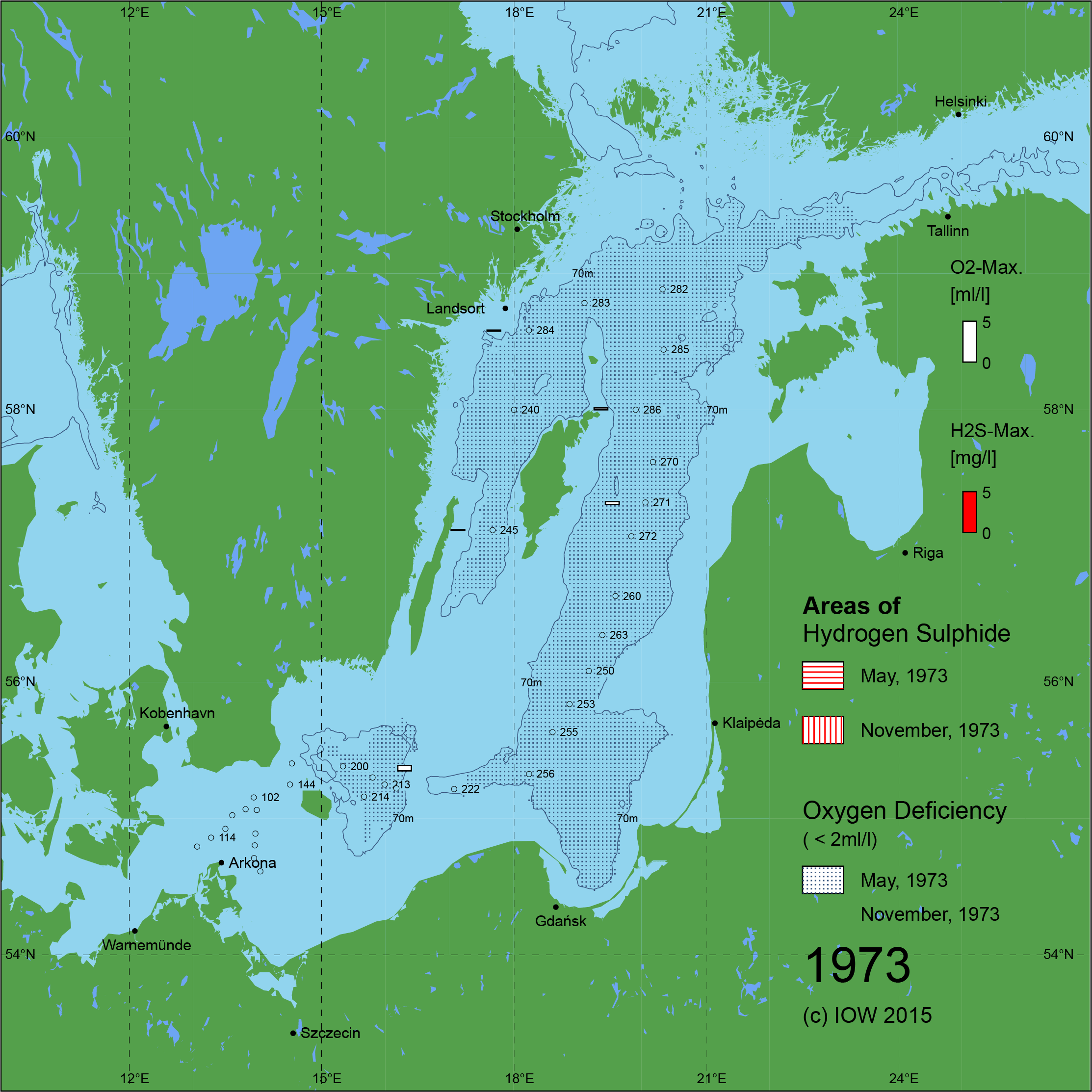 Sauerstoffarme und sauerstofffreie Gebiete in der Ostsee - 1973