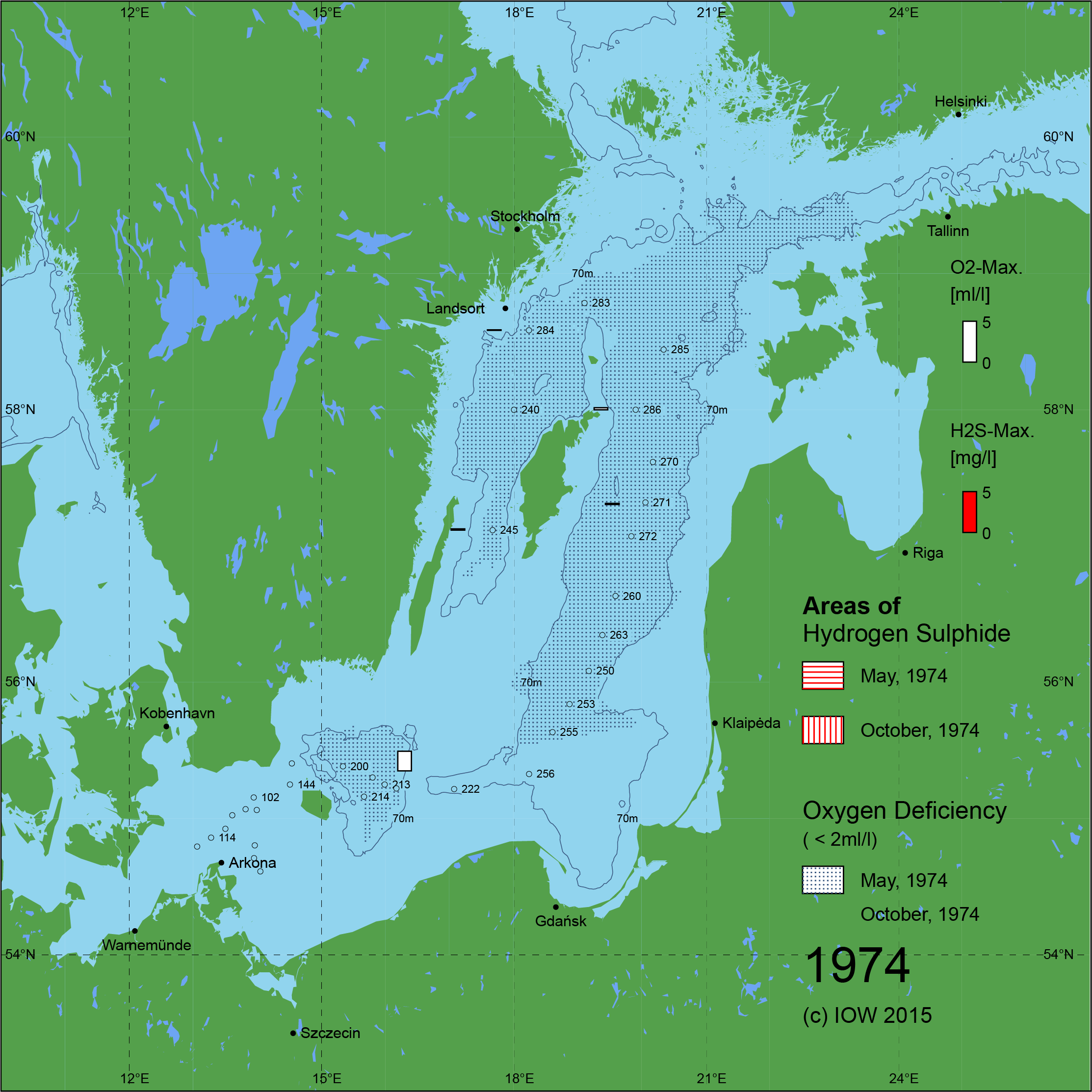 Sauerstoffarme und sauerstofffreie Gebiete in der Ostsee - 1974