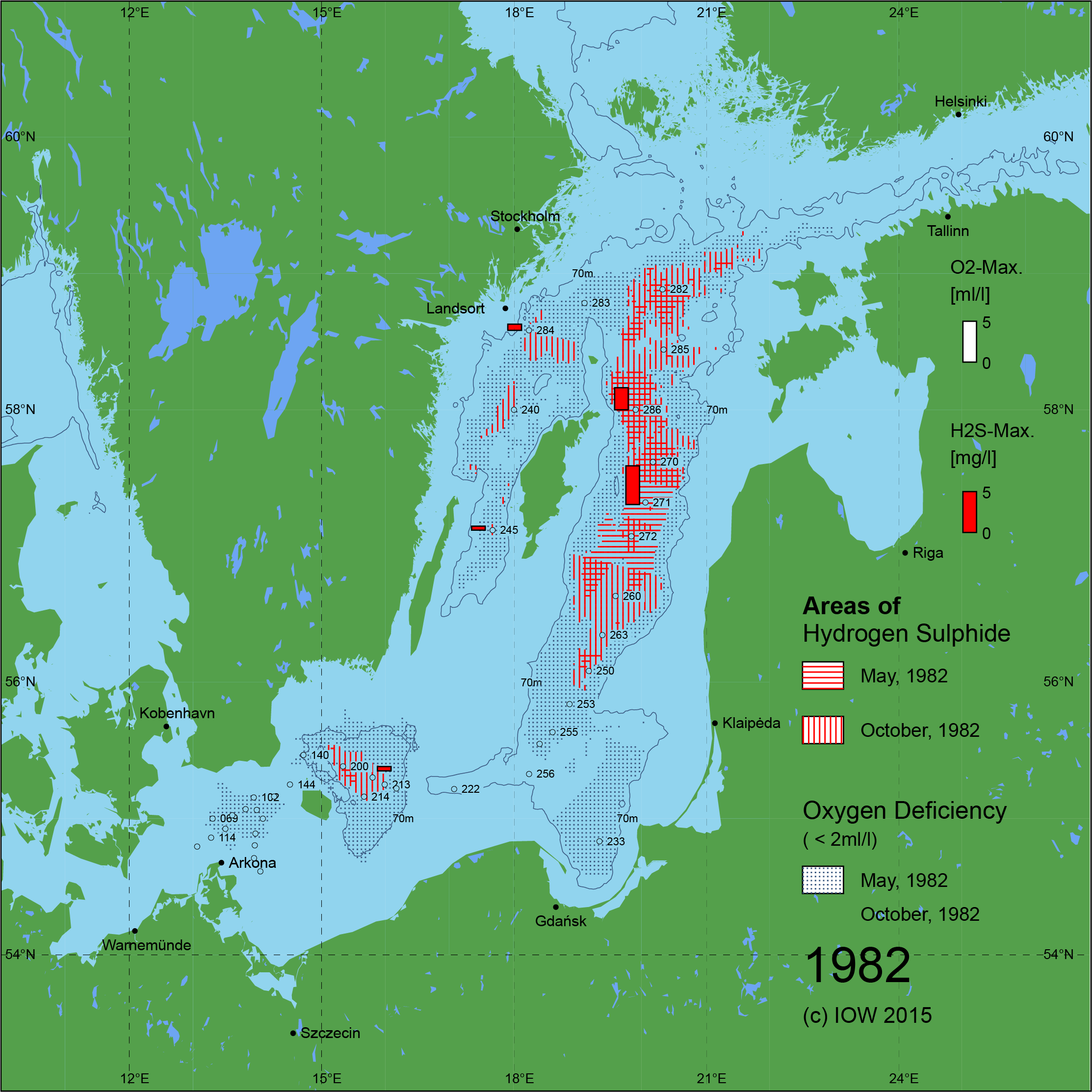 Sauerstoffarme und sauerstofffreie Gebiete in der Ostsee - 1982