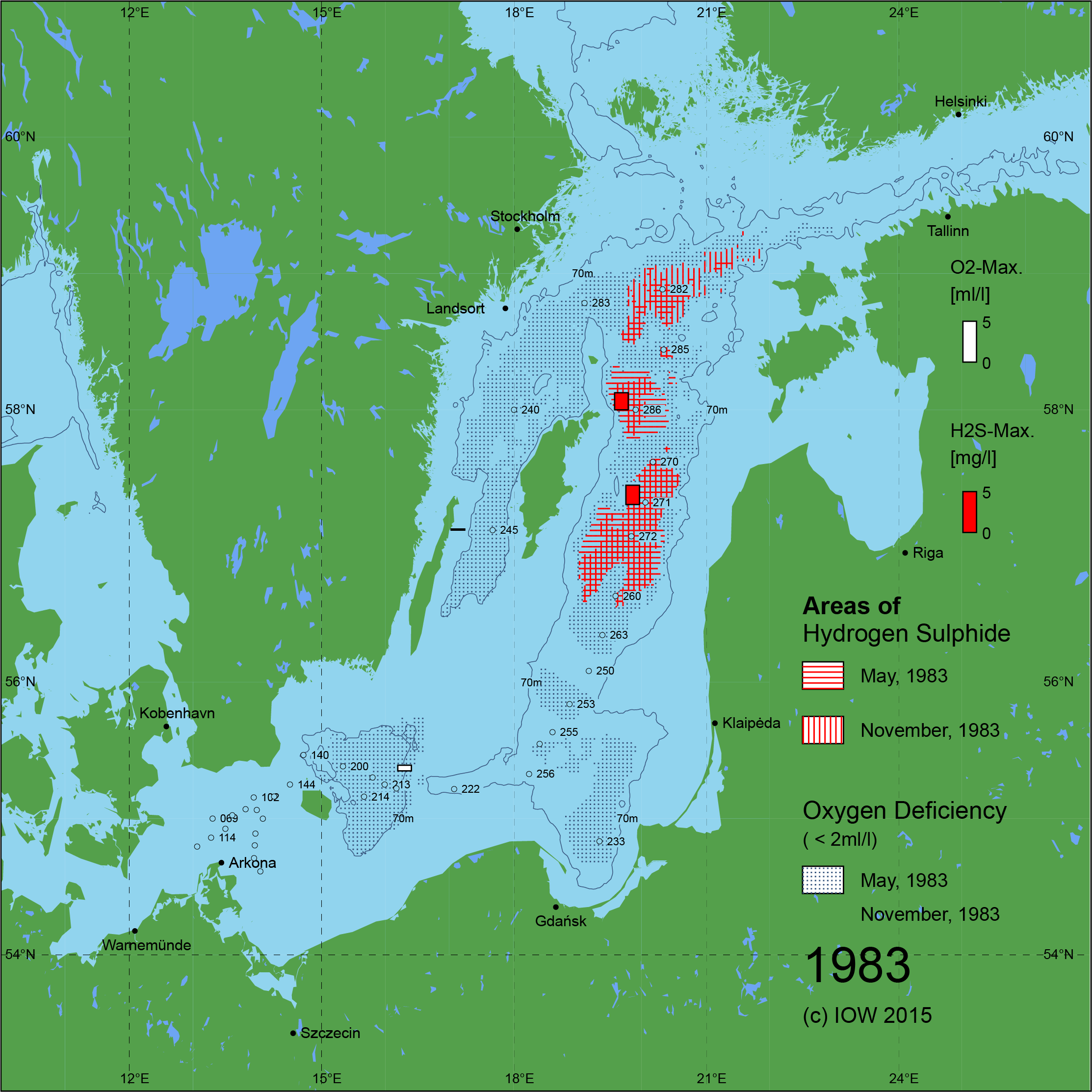 Sauerstoffarme und sauerstofffreie Gebiete in der Ostsee - 1983