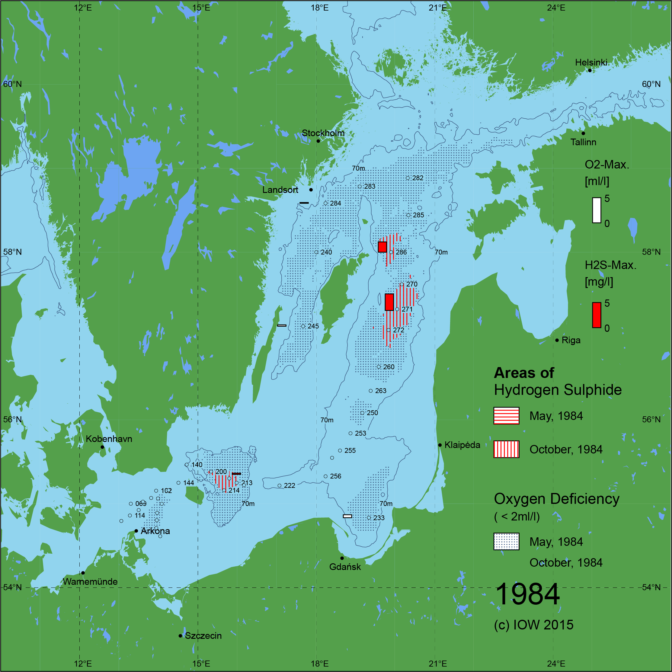 Sauerstoffarme und sauerstofffreie Gebiete in der Ostsee - 1984