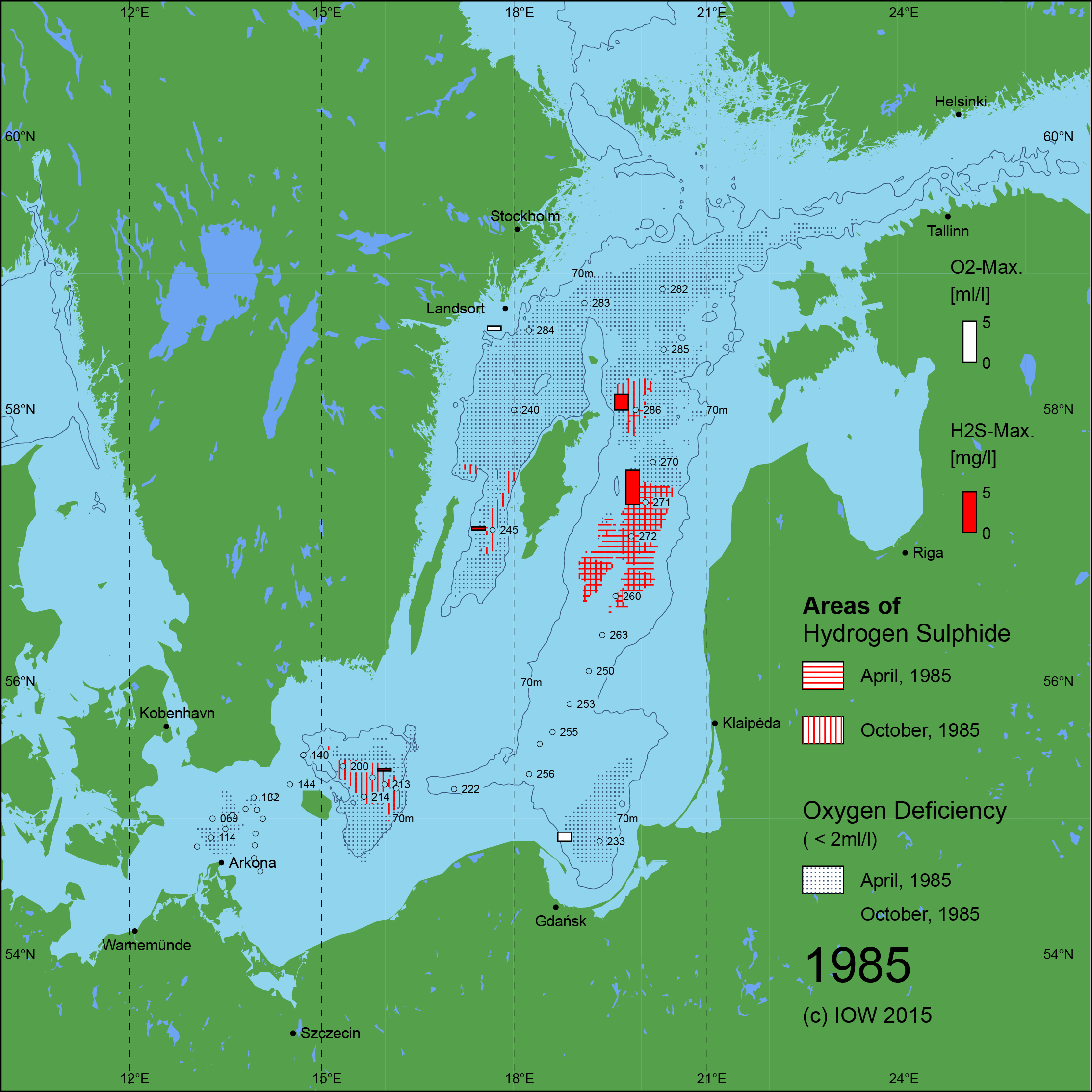 Sauerstoffarme und sauerstofffreie Gebiete in der Ostsee - 1985