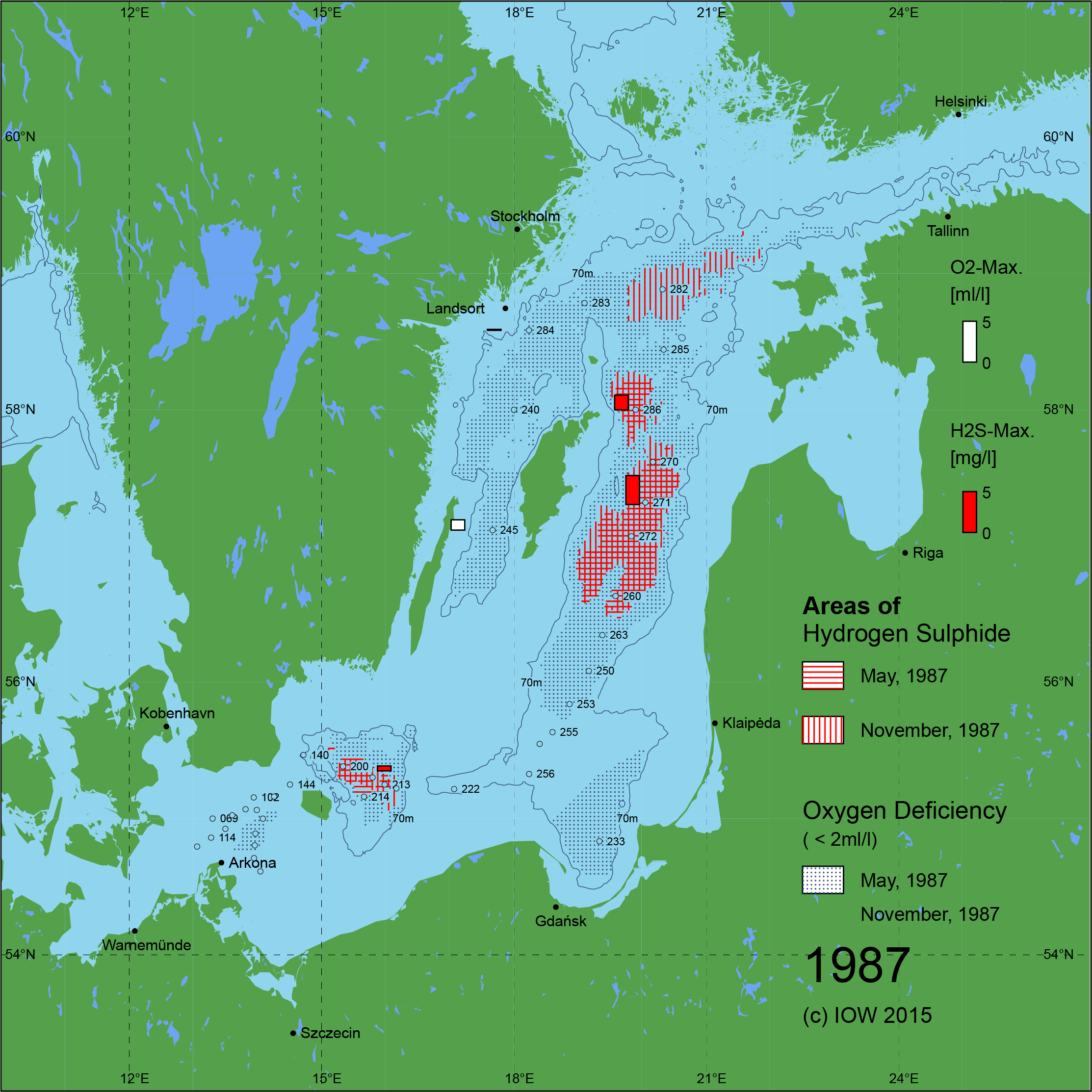 Sauerstoffarme und sauerstofffreie Gebiete in der Ostsee - 1987