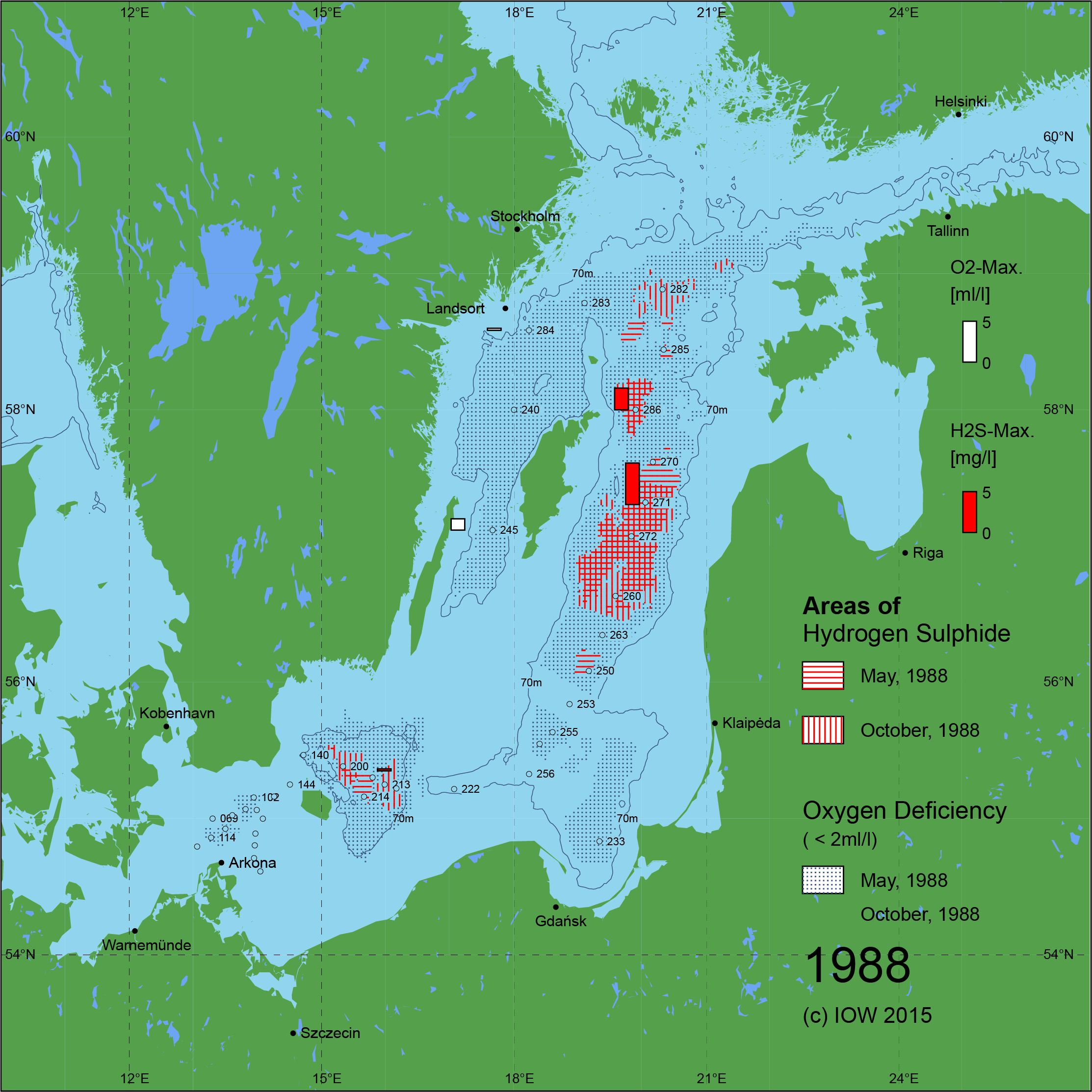Sauerstoffarme und sauerstofffreie Gebiete in der Ostsee - 1988