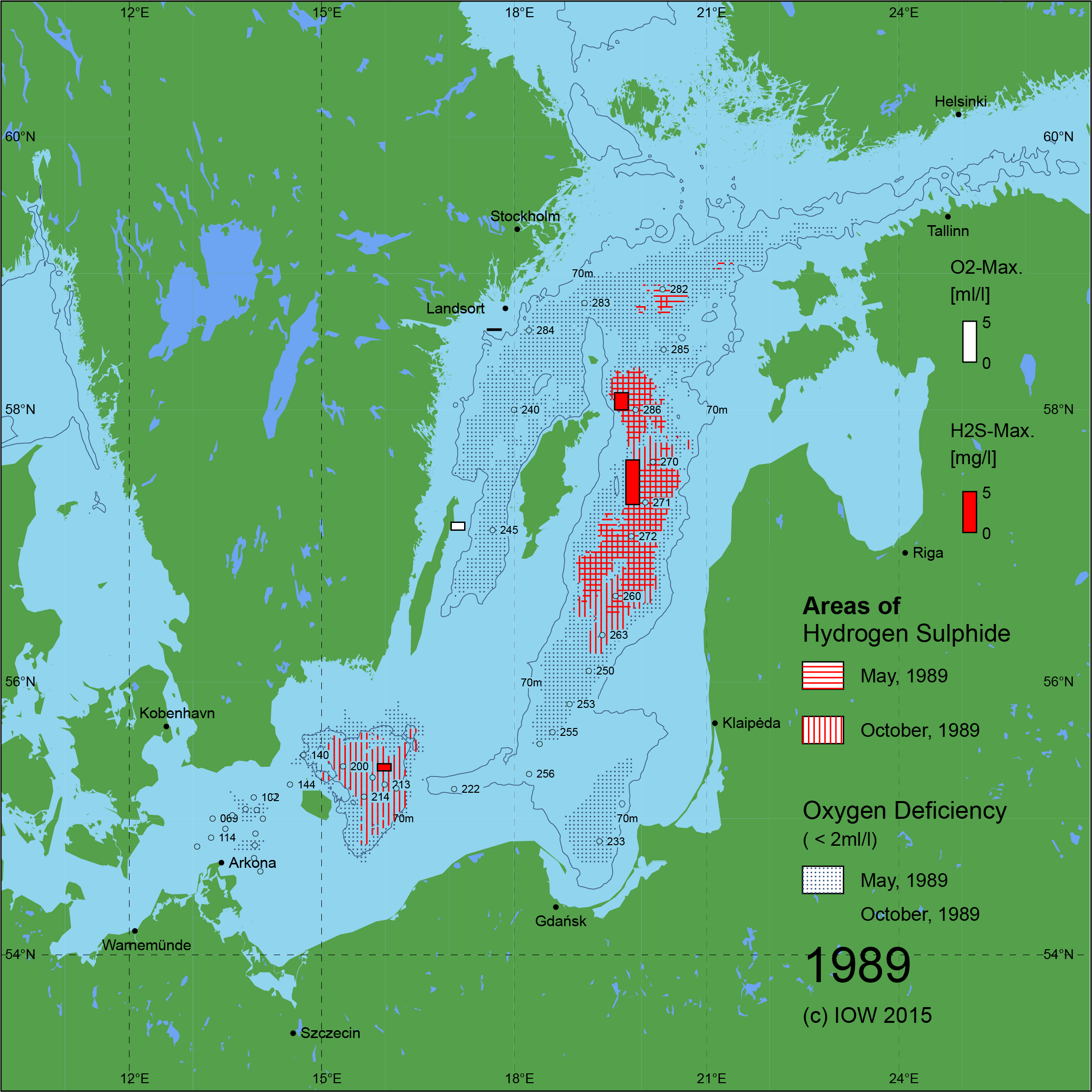 Sauerstoffarme und sauerstofffreie Gebiete in der Ostsee - 1989