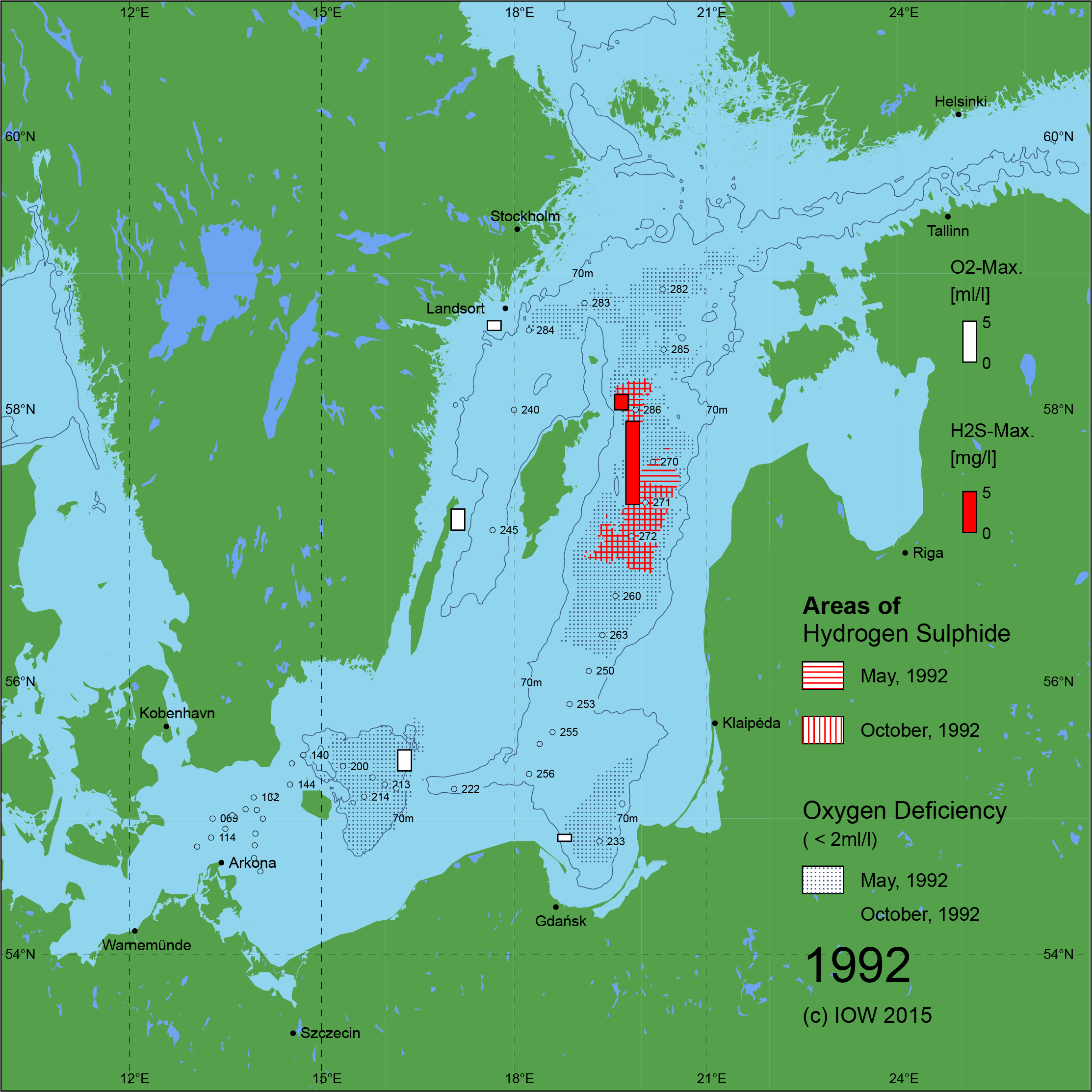 Sauerstoffarme und sauerstofffreie Gebiete in der Ostsee - 1992