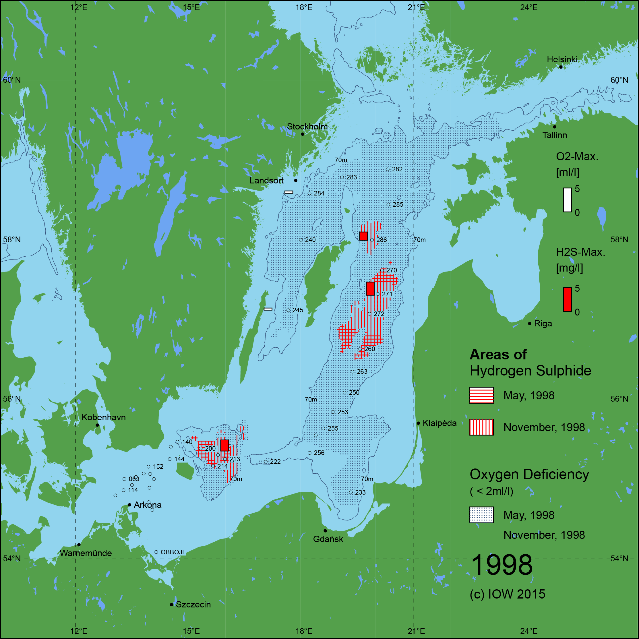 Sauerstoffarme und sauerstofffreie Gebiete in der Ostsee - 1998