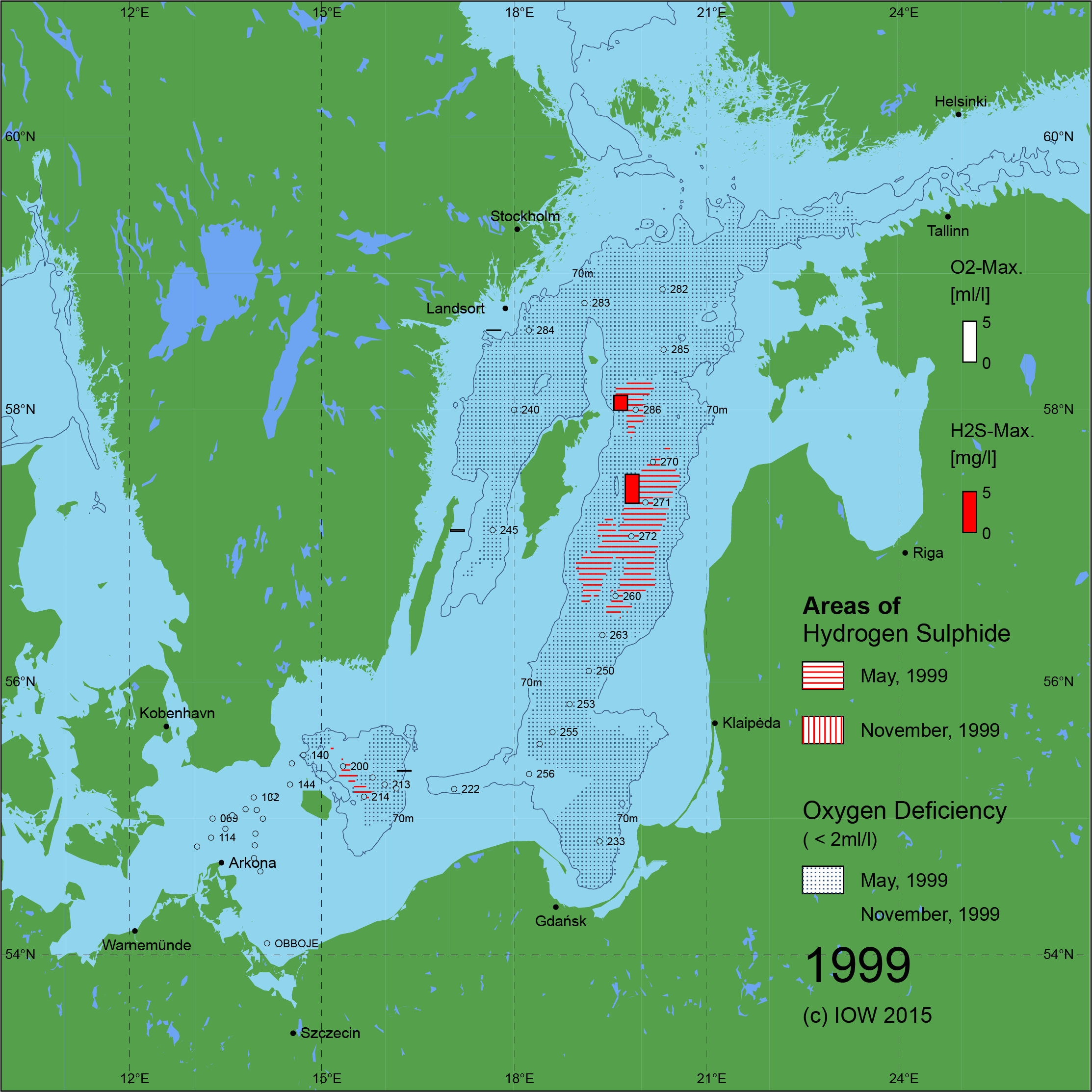 Sauerstoffarme und sauerstofffreie Gebiete in der Ostsee - 1999