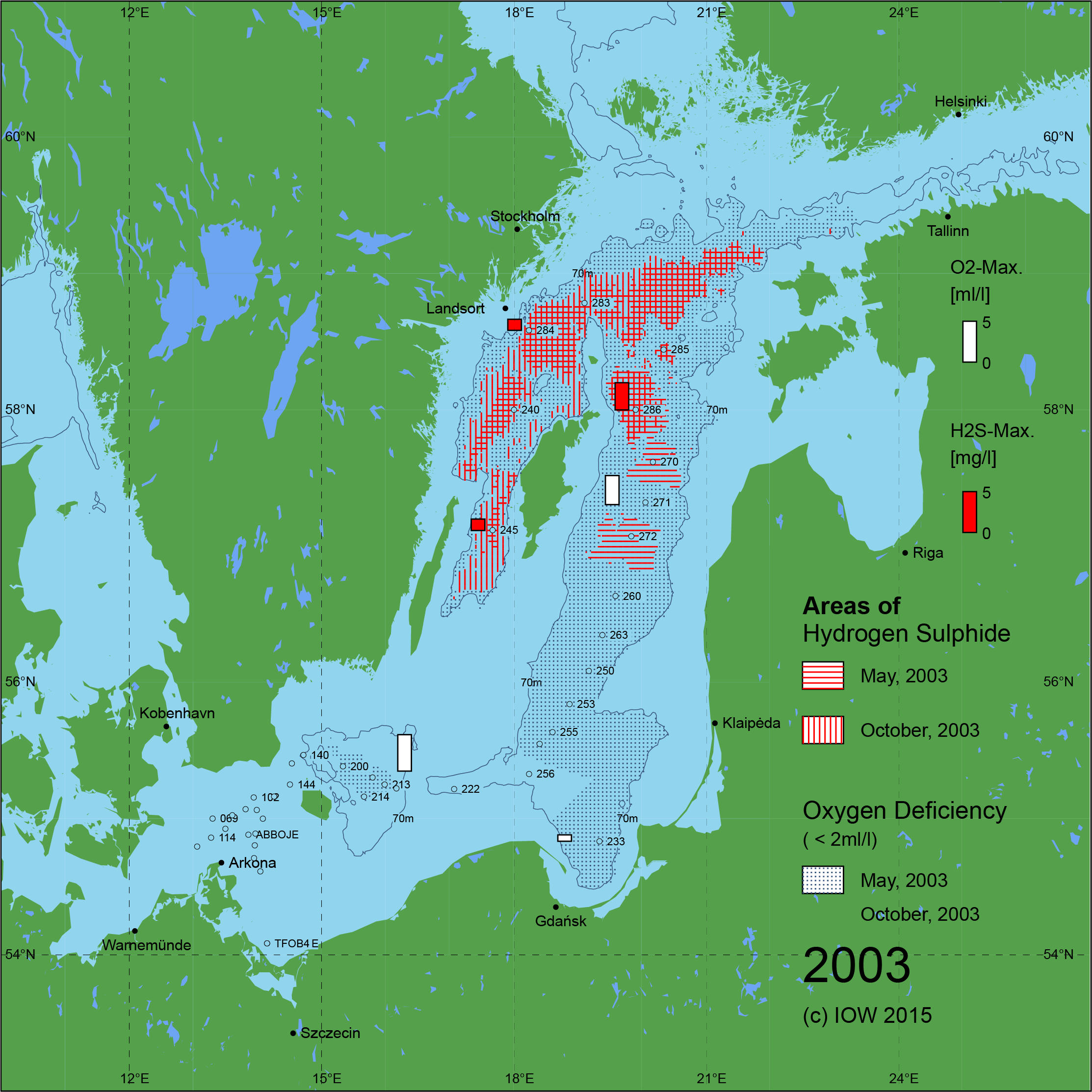 Sauerstoffarme und sauerstofffreie Gebiete in der Ostsee - 2003