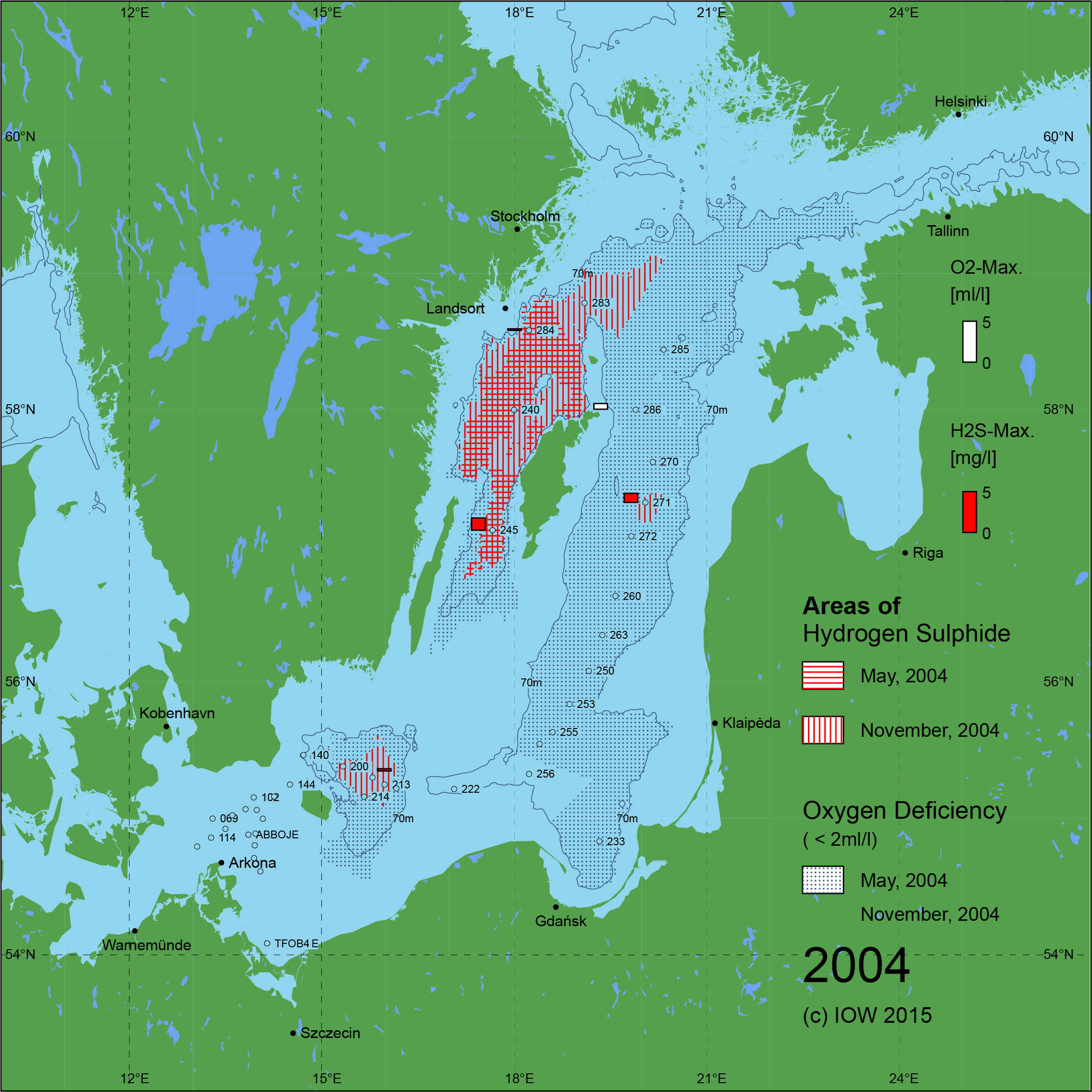 Sauerstoffarme und sauerstofffreie Gebiete in der Ostsee - 2004