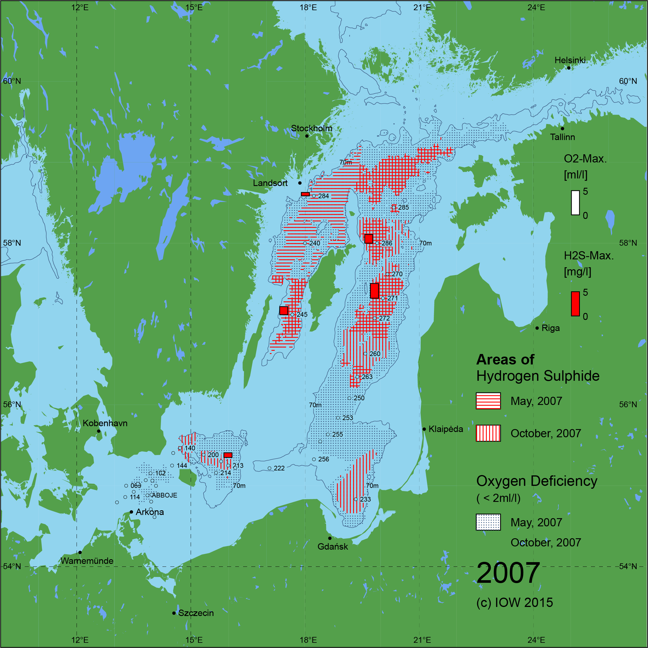 Sauerstoffarme und sauerstofffreie Gebiete in der Ostsee - 2007