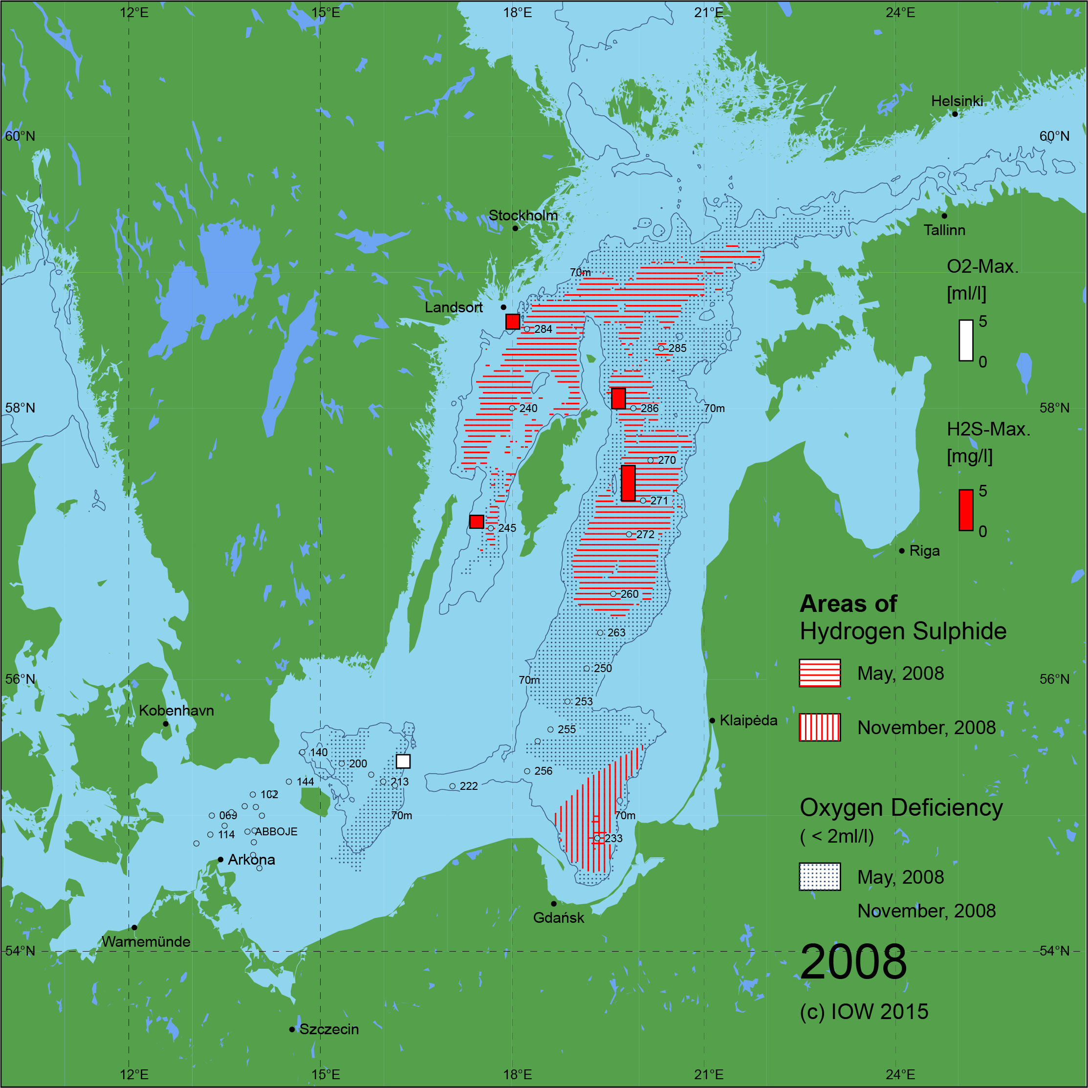 Sauerstoffarme und sauerstofffreie Gebiete in der Ostsee - 2008