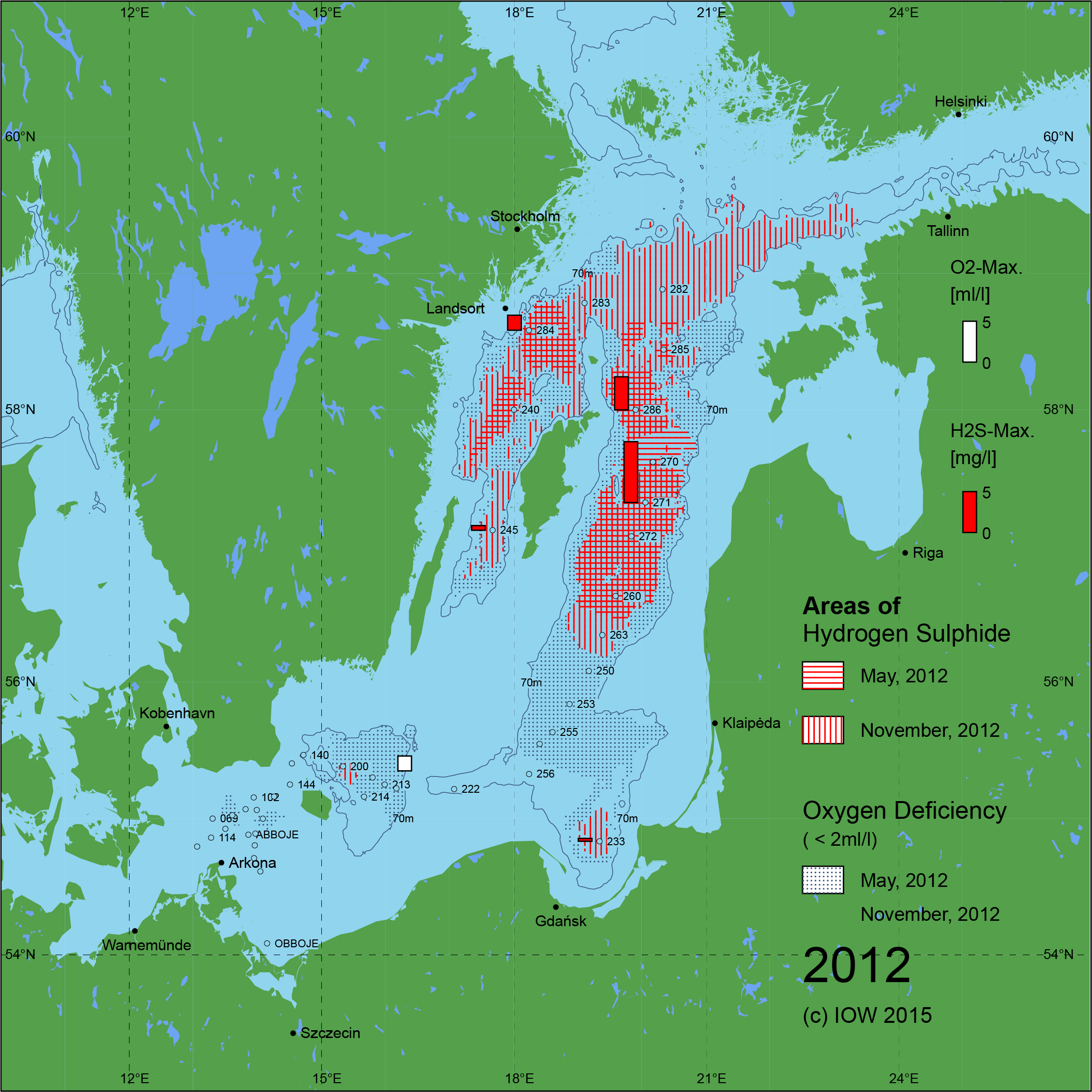Sauerstoffarme und sauerstofffreie Gebiete in der Ostsee - 2012