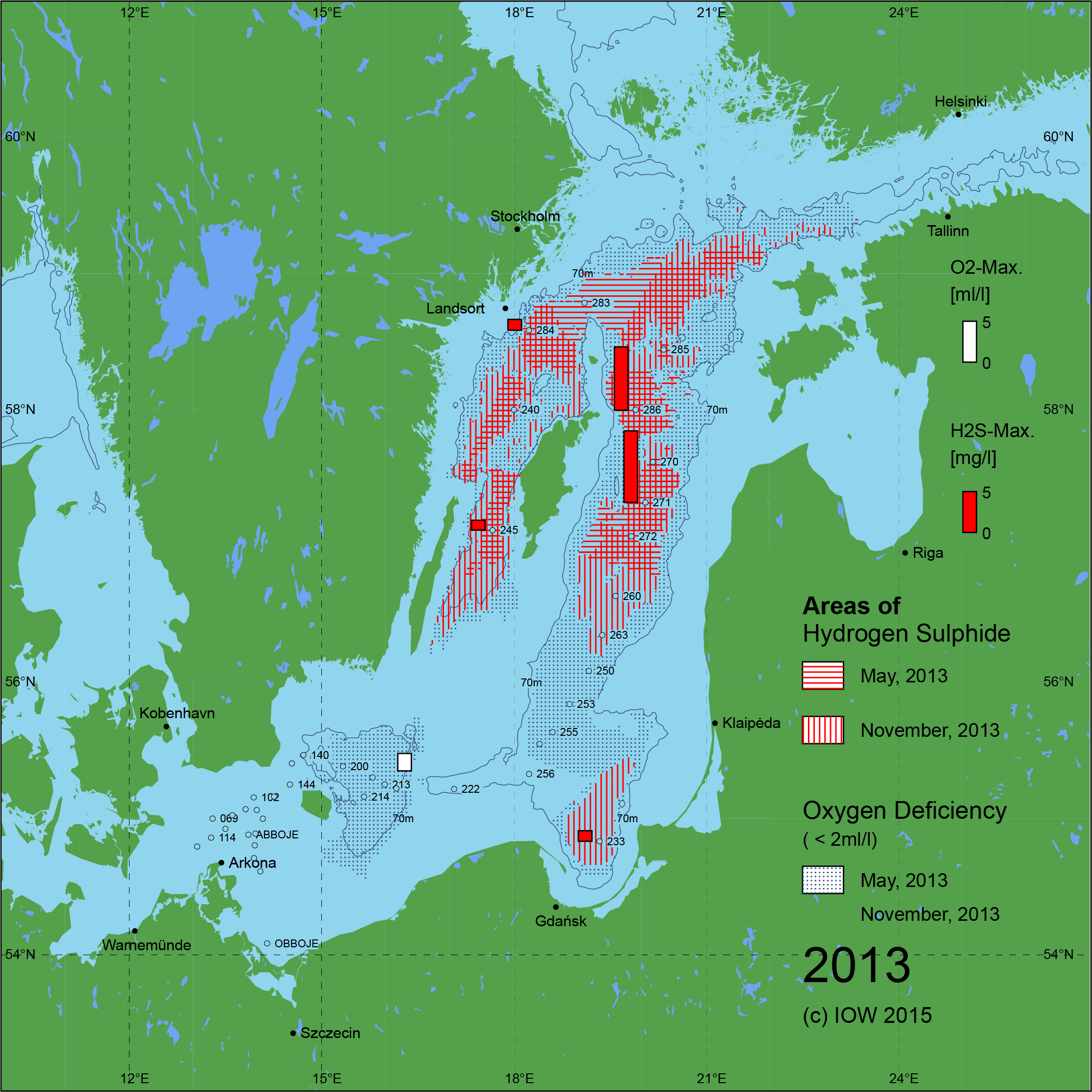 Sauerstoffarme und sauerstofffreie Gebiete in der Ostsee - 2013