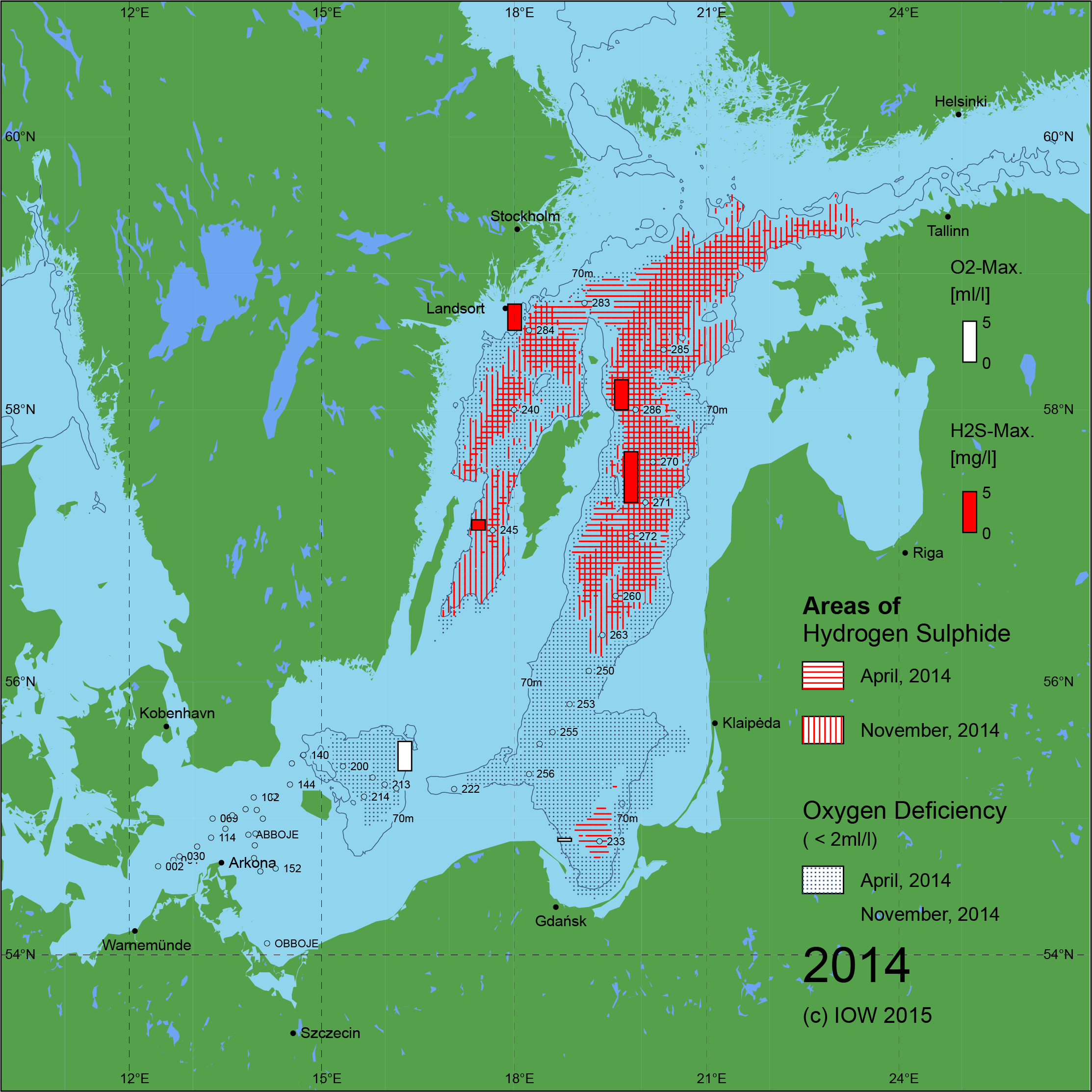 Sauerstoffarme und sauerstofffreie Gebiete in der Ostsee - 2014