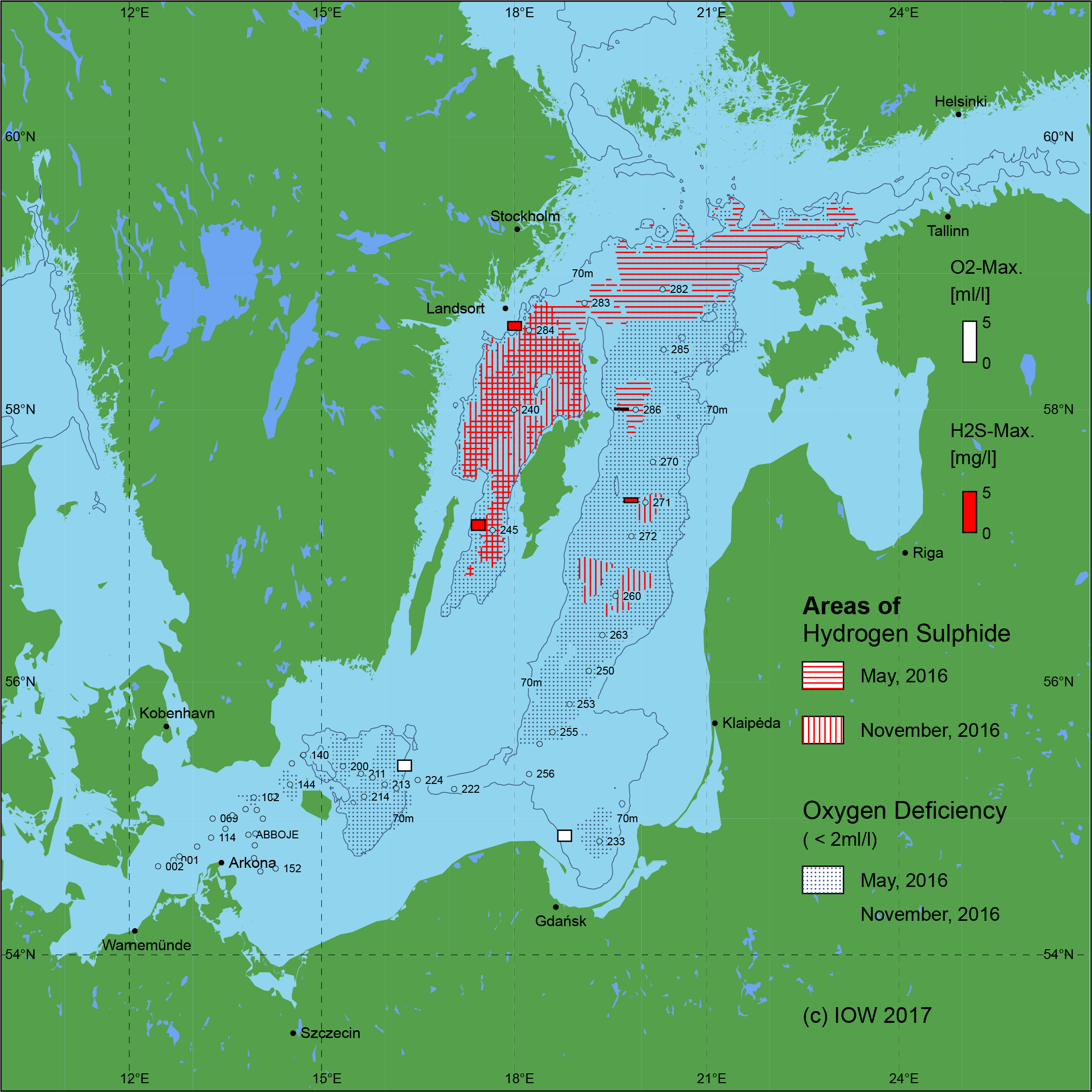Sauerstoffarme und sauerstofffreie Gebiete in der Ostsee - 2017