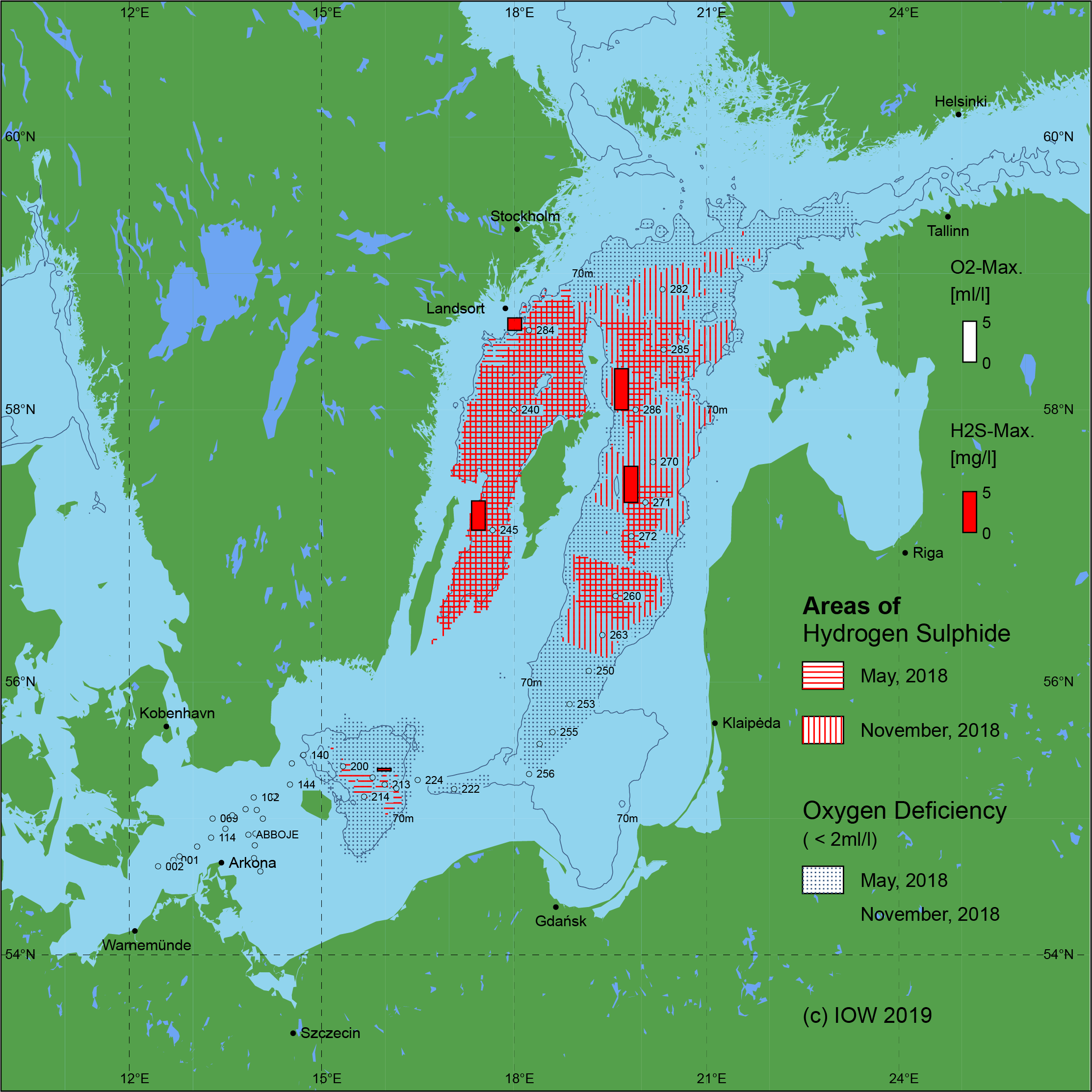 Sauerstoffarme und sauerstofffreie Gebiete in der Ostsee - 2018