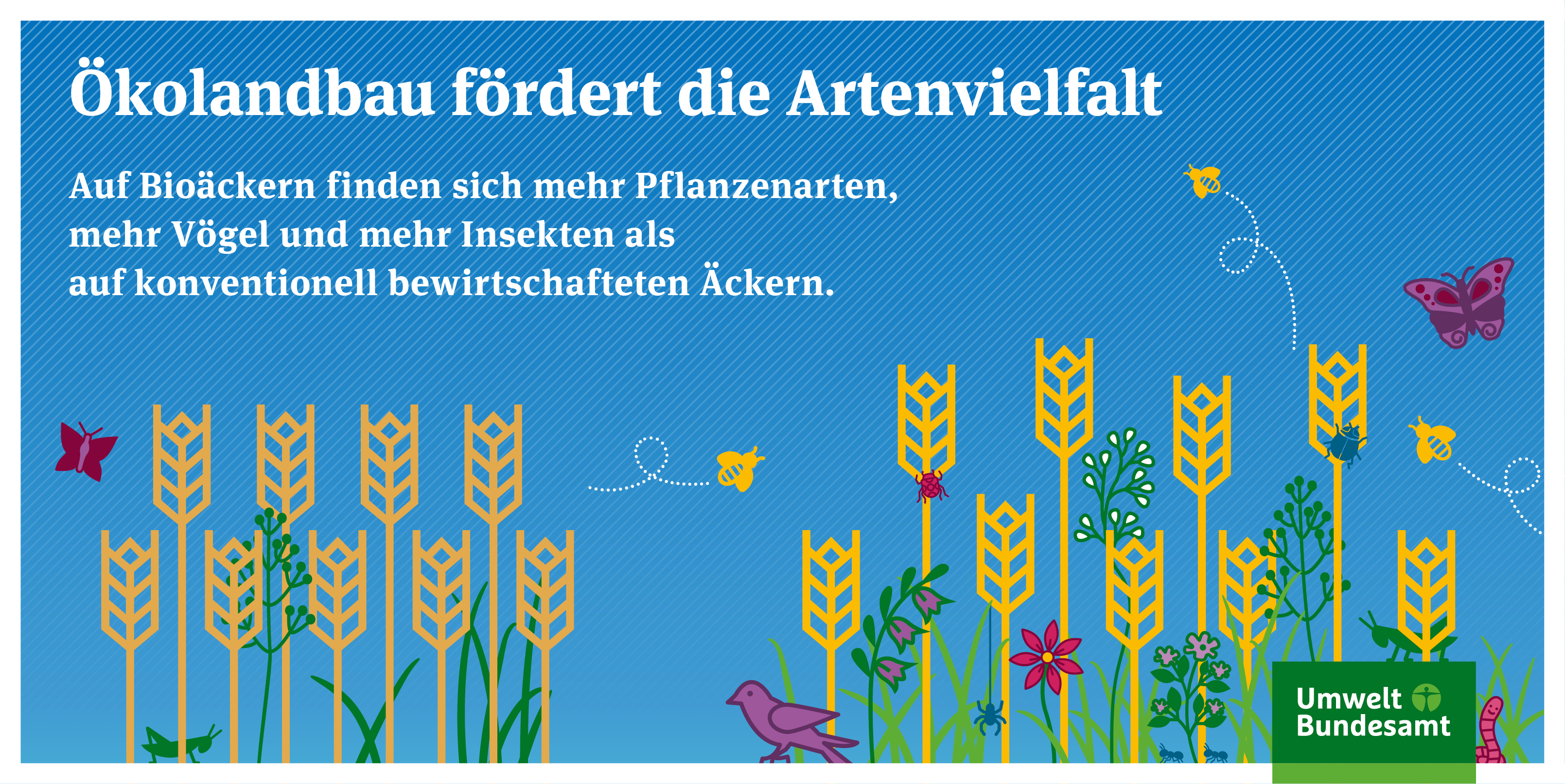 Eine ökologische Landwirtschaft entlastet Gewässer und Böden. Der ökologische Landbau hatte in Deutschland 2024 einen Anteil an der Agrarfläche von 11,4 Prozent, 1999 waren es nur 2,9 Prozent. Die Bundesregierung hat sich zum Ziel gesetzt, den Anteil des ökologischen Landbaus an der gesamten landwirtschaftlich genutzten Fläche bis 2030 auf 30 Prozent zu steigern.