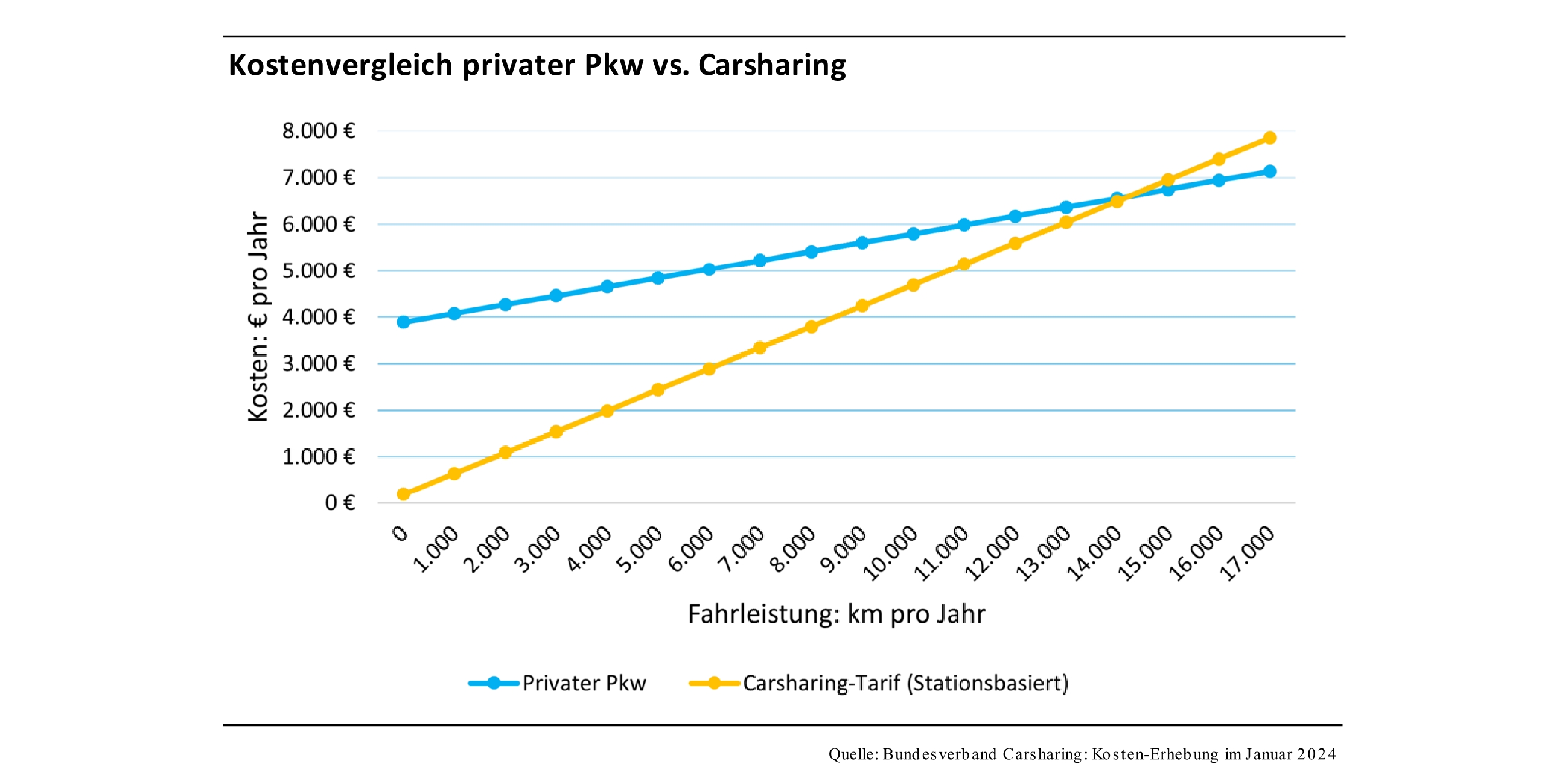 • Nutzen Sie Carsharing, wenn Sie weniger als 14.000 Kilometer pro Jahr fahren.