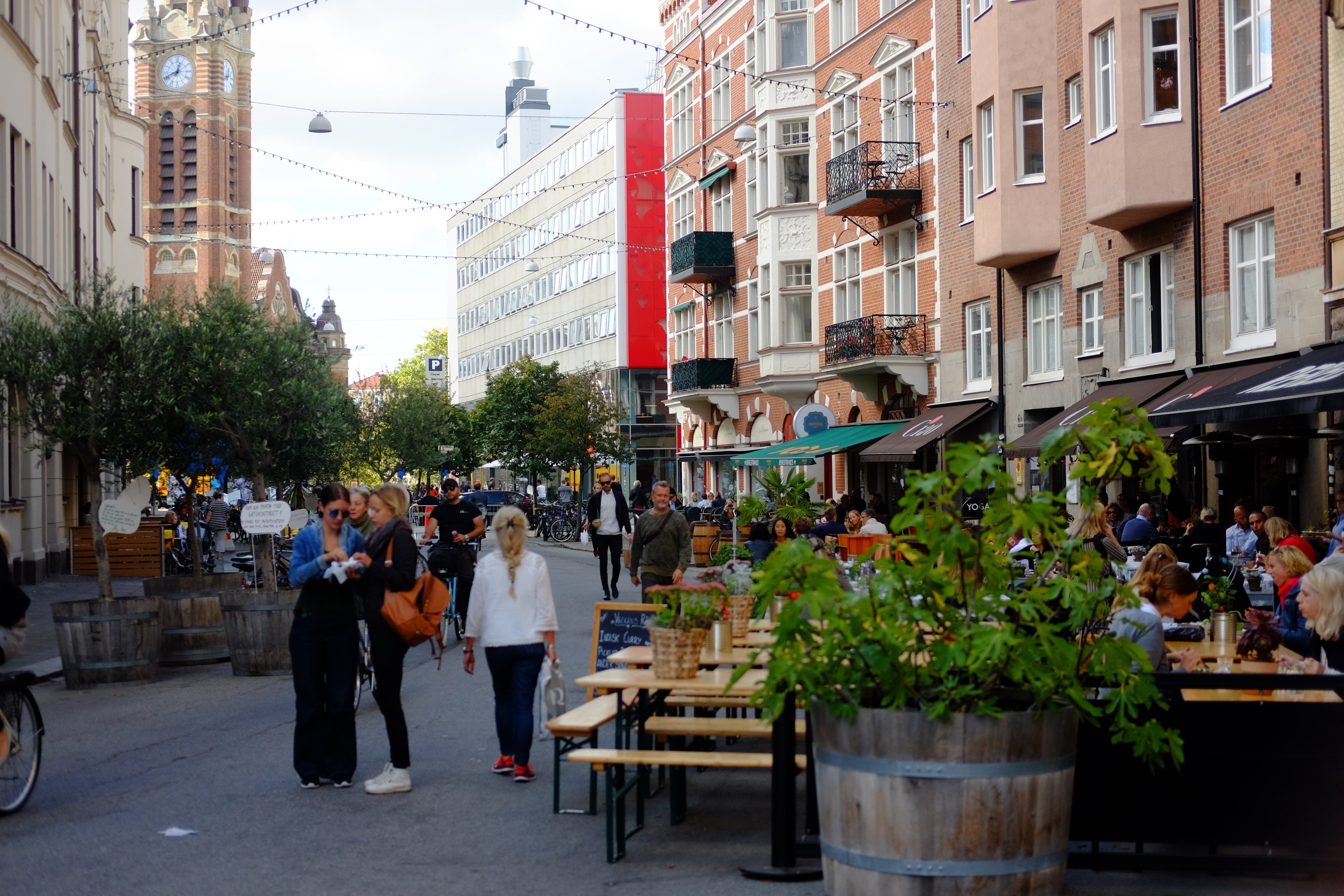 Malmö hatte bereits erste Erfahrungen mit temporären Designelementen im Straßenraum gesammelt (beispielsweise im Rahmen des Parking Day). Hierbei ist immer deutlich geworden, wie wichtig es ist, gleich zu Beginn den gesamten neu entstandenen Platz in die Planungen einzubeziehen. Denn ein paar Stühle oder ein einzelnes Sofa gehen schnell im Straßenraum unter, so dass der gewünschte Effekt ausbleibt. Außerdem wurden Geschäfte, Cafés und Restaurants, die in der Straße angesiedelt sind, von Anfang an in den Designprozess eingebunden. Auf Wunsch konnten sie den freigewordenen Platz auf der Straße für ihre Zwecke nutzen – ein Angebot das sehr gerne angenommen wurde. Sowohl Kundinnen und Kunden als auch Ladenbesitzende empfanden die neu entstandenen Freiflächen als Bereicherung.